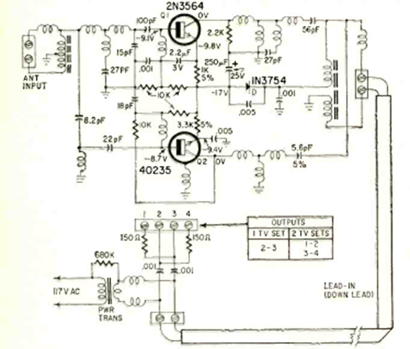 This old VHF TV booster that also serves FM was found in Radio Electronics magazine from April 1967. The transistors are from the time, and it works up to 890 MHz, which is the extreme of the UFH range at the time.