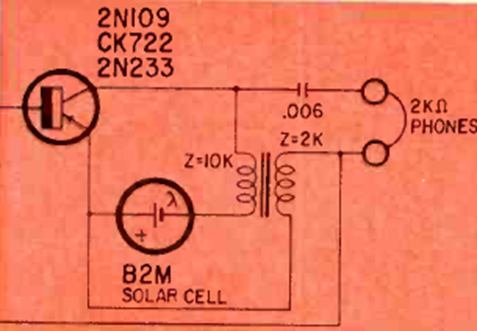 This simple oscillator with a photocell was found in a Radio Electronics from January 1965. The headphone is high impedance, and the capacitor determines the frequency.
