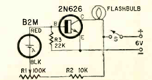 This circuit uses the first commercial Darlington transistor, the 2N626. We found it in Radio Electronics magazine from June 1961. It drives a 6V flash lamp.