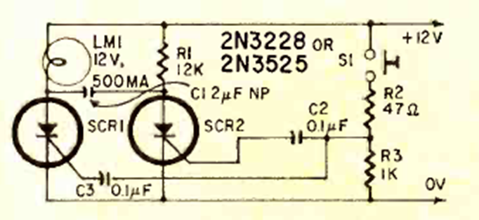 This bistable with two SCRs was found in the Radio Electronics magazine of June 1969. The circuit has a supply voltage according to the controlled load.