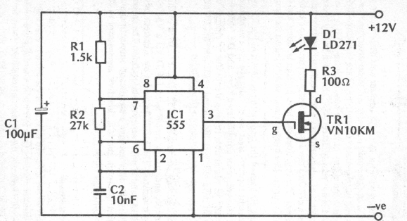 This '80s circuit drives an infrared LED, producing a modulated signal. Modern higher power LEDs can be used with R3 reduction.