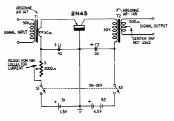 Found in an old American documentation, this step has as input and output transformers coupling. Two power sources are used.