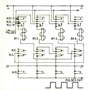 This up-down relay driving circuit for automation applications was found in Radio Electronics magazine from October 1961. The circuit uses relays according to the supply voltage.