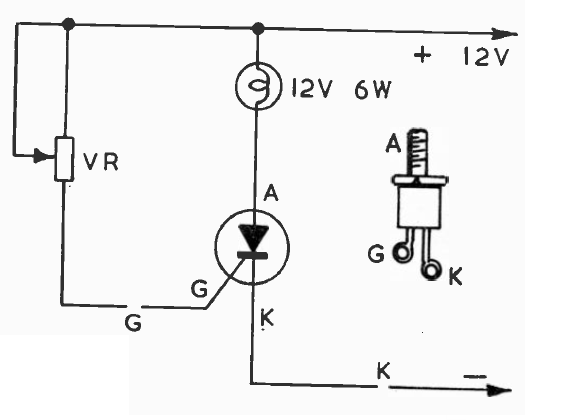 VR can be from 50 to 220k it is recommended to connect a 100-ohm resistor in series. The lamp may be of lower power. General purpose SCRs can be tested.