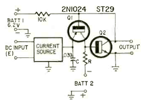 This circuit is from a Radio Electronics from February 1964. The circuit uses period transistors and is battery powered. The central frequency of the oscillator is determined by capacitor C and resistor R.