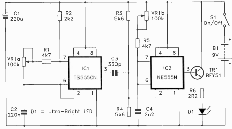 We found this circuit in an English documentation from 1995. The components used are common nowadays. The power transistor admits equivalent. R6 depends on the current of the LED.
