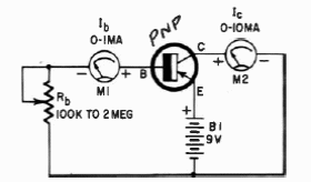 In the figure we have a simple way to measure the gain of a transistor. It is convenient to add 1k current limiting resistors in series with the instruments.