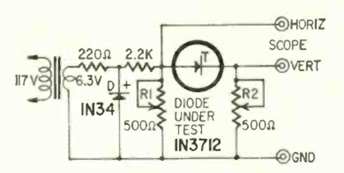 This circuit was found in a Radio Electronics from February 1966. With it it is possible to trace the curve of a tunnel diode visualizing it on an oscilloscope.