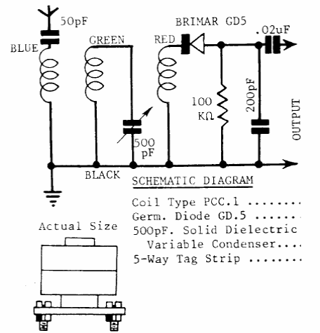 Found in an English publication from the 1960s, this circuit uses period components, including the commercial grade coil.