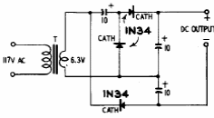 This source was found in American documentation from the 60's. The diodes are germanium, and the maximum output is a few milliamps.