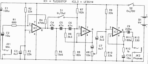We found this circuit in an English documentation from 1995. The components used are common nowadays. The phone is low impedance.