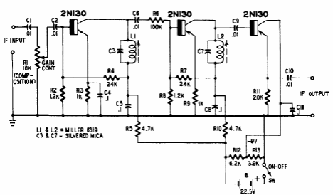 Used in 1950s CW receivers, this type of circuit used germanium transistors. The circuit has excellent gain.