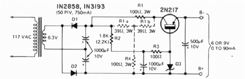 This 1-transistor circuit for currents up to 50 mA was found in the August 1974 Radio Electronics magazine. The transformer is 50 to 200 mA.
