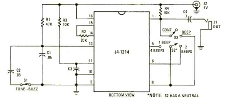 This programmable sound circuit was found in the July 1978 issue of Radio Electronics magazine. It uses an integrated circuit of the time dedicated to producing effects.