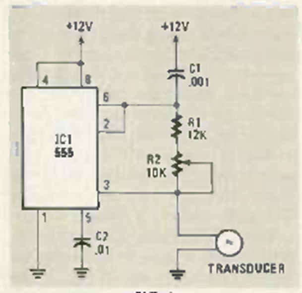 In the figure we have an ultrasound generator using a capacitive transducer that serves as a timing capacitor. The circuit is from Radio Electronics from November 1985.