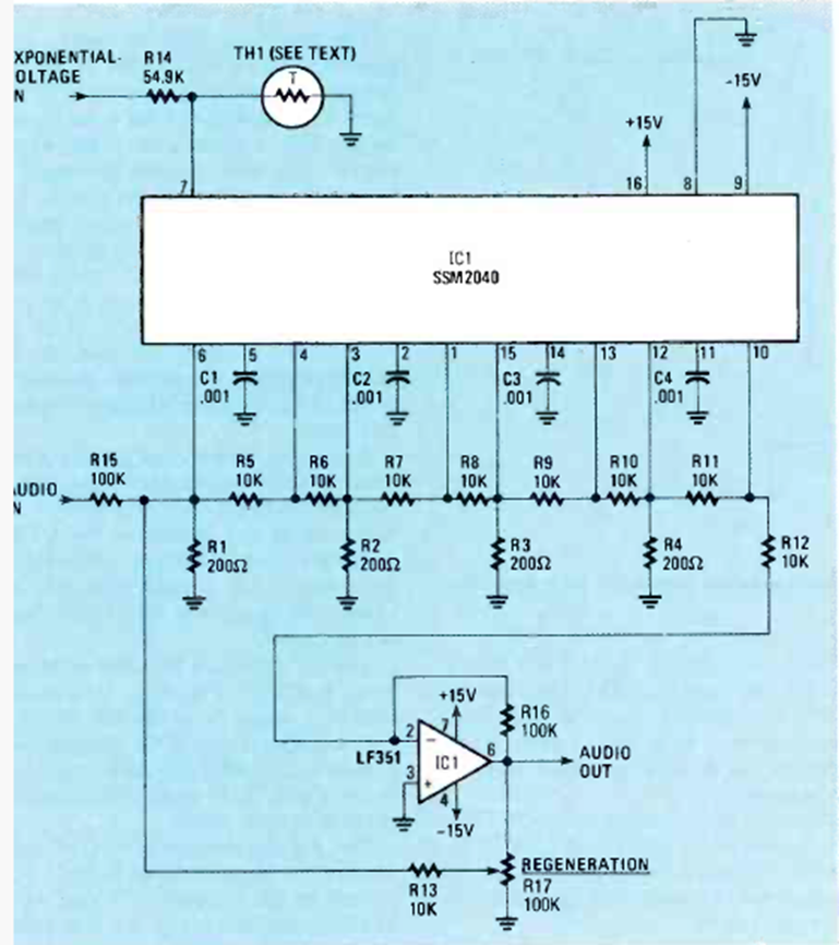 This circuit was found in the May 1983 issue of Radio Electronics magazine. The SSM7046 integrated circuit is a special type for this purpose and is quite sensitive to short circuits, requiring a symmetrical power supply.