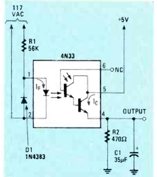 Using a 4N33 optical coupler, we have in the figure an optical interface for TRTL circuits, triggered by the power grid voltage. The circuit can be modified to interface other logics.
