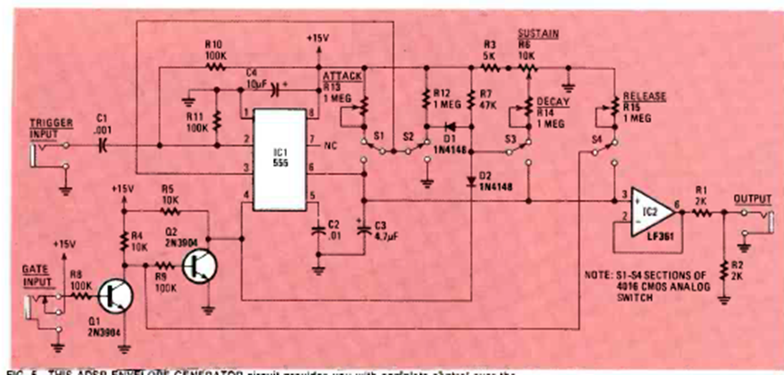 This synthesizer circuit was found in a Radio Electronics magazine from May 1983. The circuit uses common components and does not require a balanced power supply.