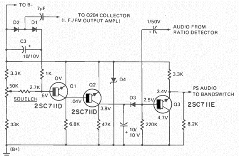 This circuit for communications receivers was found in the January 1974 issue of Radio Electronics magazine. The transistors are Japanese types of the time, as the circuit was part of equipment of that origin.