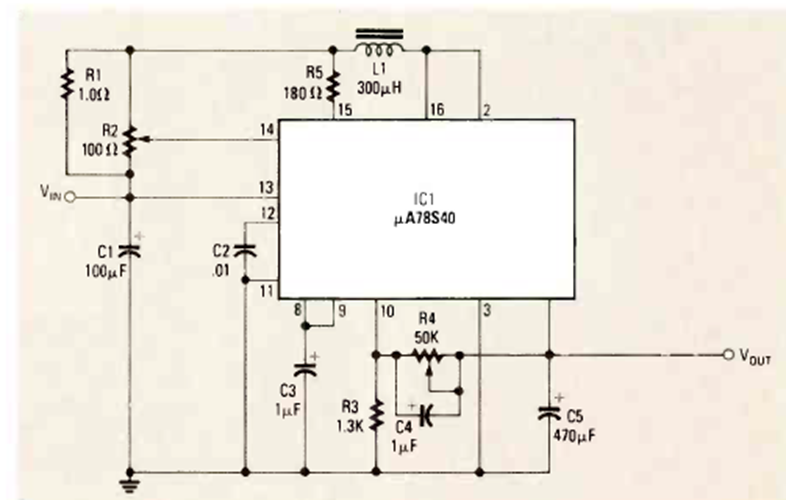 This step-down regulator was found in the December 1985 issue of Radio Electronics magazine. The circuit has an input voltage of 25V.