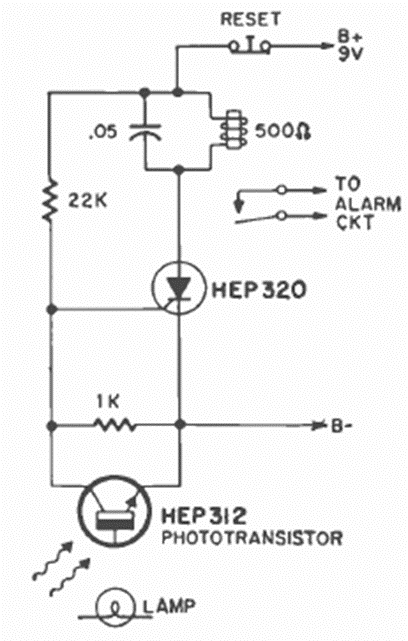 This passage alarm was found in the April 1971 Radio Electronics magazine. Instead of R1, a 47k trimpot can be used to adjust the sensitivity according to the phototransistor used.