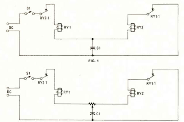 In the figure we have two possible configurations for multivibrators with relay. The idea comes from an article in the magazine Radio Electronics from April 1980. The relays are sensitive types with voltage according to the power supply.