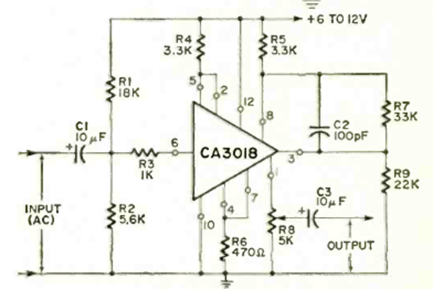 Using an RCA CA3018 integrated circuit, this circuit was found in the November 1970 issue of Radio Electronics magazine. The maximum frequency typically does not reach 1 MHz.