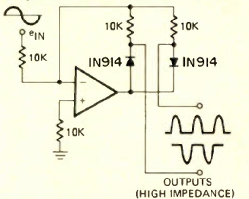 This operational amplifier circuit was found in the July 1975 issue of Radio Electronics magazine. The circuit can be applied to any operational amplifier, including the 741. The maximum frequency depends on the operational amplifier used.