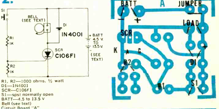 The sensor is S1 in this alarm that we found in a Radio Electronics magazine from May 1971. Several sensors can be used in series. The SCR supports equivalents from the 106 series.