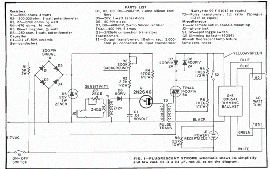 This light effect circuit was found in the July 1971 Radio Electronics magazine. The circuit is powered by 110 V mains but can be modified depending on the triac and lamp.