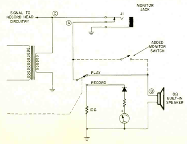 With this circuit it is possible to monitor a signal that is being recorded on an old tape recorder. It may have other uses today. The circuit is from a Radio Electronics magazine from November 1971.