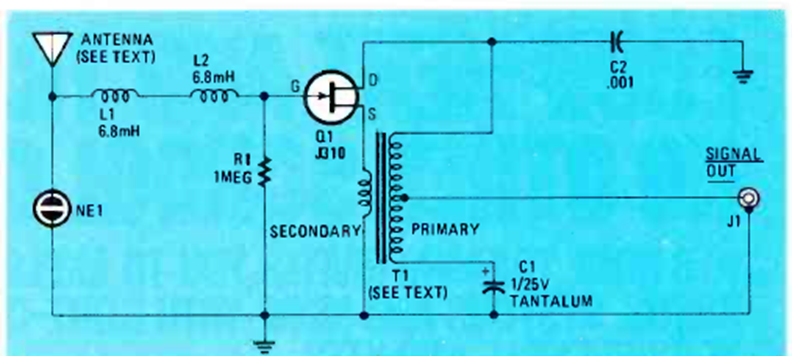 This circuit for the very low frequency range was found in the Radio Electronics magazine of February 1983. The components are according to the frequency range to be amplified.