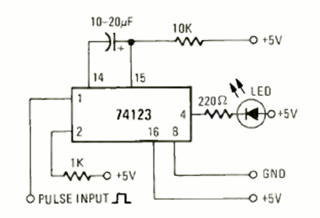 Using a 74123 TTL this circuit was found in the Radio Elecronics magazine of June 1975. The power supply must be 5 V. The capacitor determines the activation time.