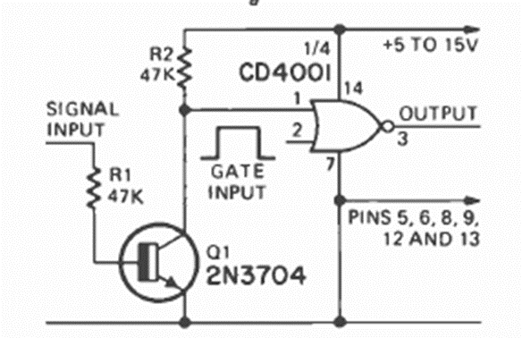 This circuit for triggering a CMOS gate without rebounding was found in the October 1974 issue of Radio Electronics magazine. The transistor was a general-purpose transistor of the time.