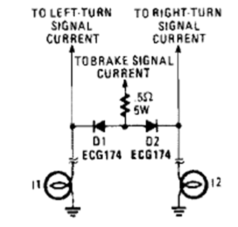 Found in a Popular Electronics from the 90s, this circuit triggers an indicator when these lights are on. The circuit can be adapted for LEDs.