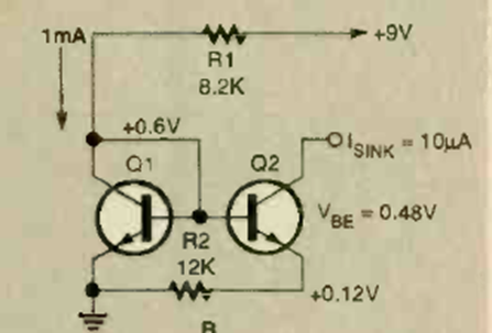 This circuit consists of a current mirror that produces a constant current of 10 uA. The circuit was found in the November 1998 issue of Electronics Now magazine.