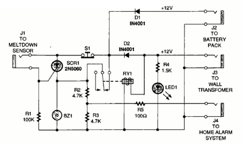 This circuit that detects when the refrigerator is not working properly was found in the February 1997 Electronics Now magazine.