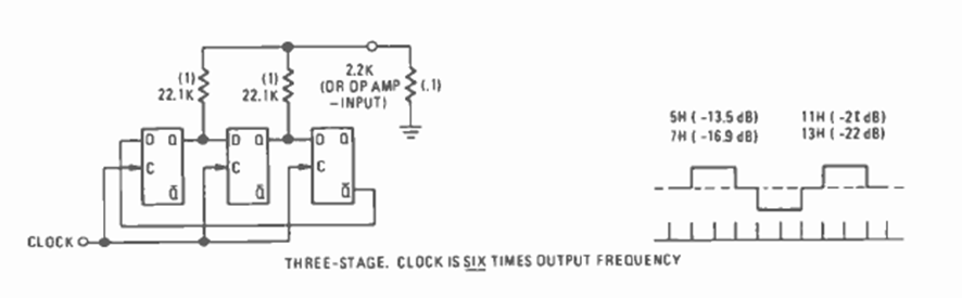 This 3-step circuit for generating digital signals was found in the November 1976 issue of Radio Electronics magazine. The maximum frequency depends on the flip flops.