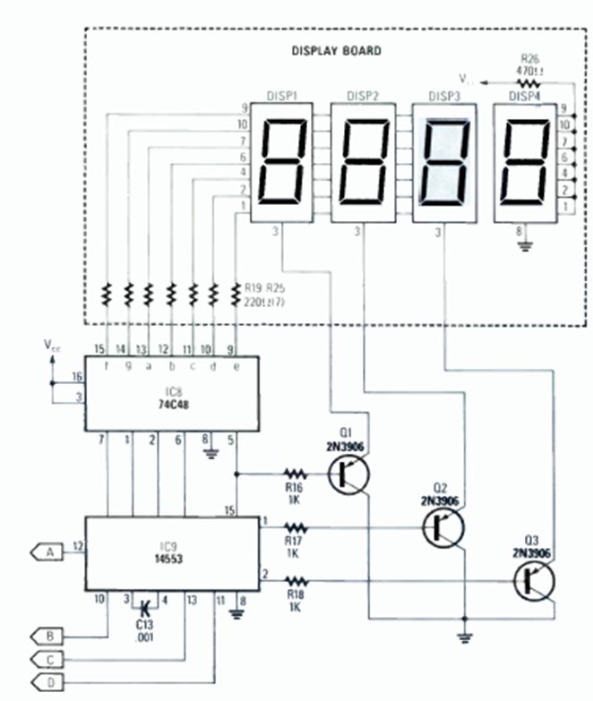 This circuit is the digital indicator for the previous circuit and can be used with similar circuits. The circuit is from an article in Radio Electronics magazine, June 1987.