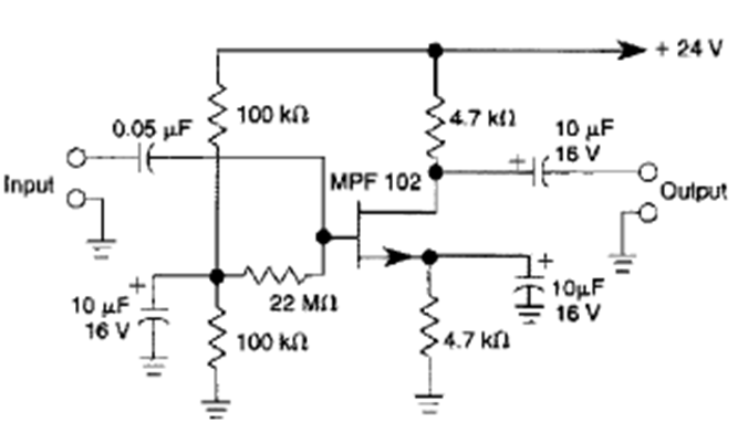 This JFET amplifier stage was found in the Encyclopedia of Electronic Circuits Volume 5 from 1995. Any JFET can be used and the bias controlled externally.