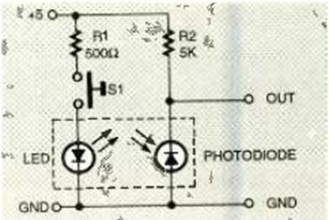 The figure shows a simple test circuit for optical isolators with photodiodes. The circuit was suggested by the magazine Electronics Now of November 1999.