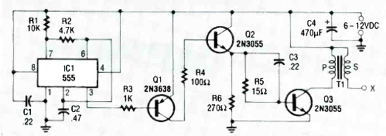 This circuit has the spark duration controlled by a 555 timer. The circuit was found in the 1990 special issue of Radio Electronics Experimenter magazine.