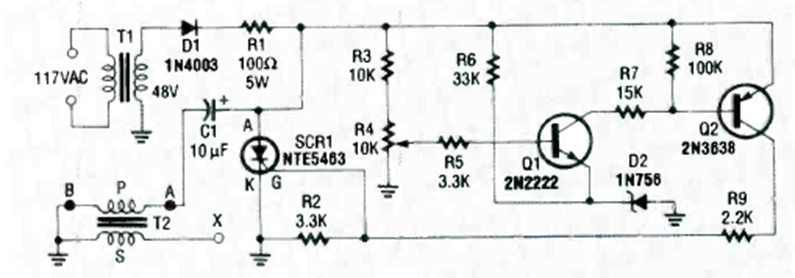 Found on a 1965 Radio Electronics, this circuit fires a signal xenon lamp applied to the SCR from...