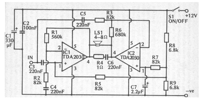 This transistor amplifier with complementary symmetry configuration can provide approximately 1 W...