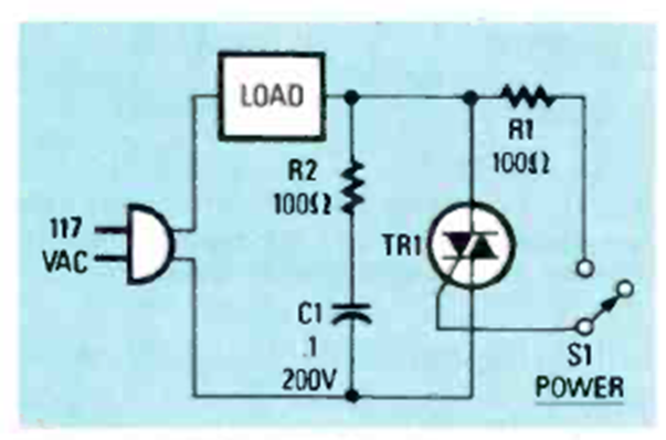 This is one of the many versions of this circuit that can be found on our website. It was published in the October 1987 issue of Radio Electronics magazine. The Triac must be equipped with a heatsink, depending on the load current.