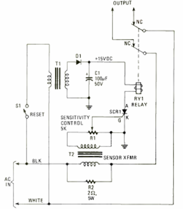 We found this circuit in the 1980 edition of Electronics Experimenter Special Projects. It is a fuse that switches off a circuit when the current exceeds a certain value.