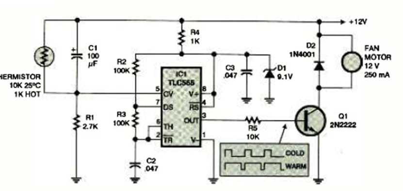This circuit can be used as a signal when powered by a car battery, as it also works with 12 V, or...