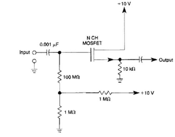 The figure shows how to obtain a high impedance amplifier with unity gain using a JFET. The circuit is from the Encyclopedia of Electronic Circuits Volume 5 of 1995.