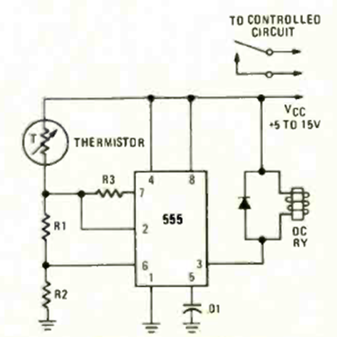 This simple thermostat circuit was found in the September 1976 issue of Radio Electronics magazine. The circuit must be supplied with voltage according to the relay. R1 and R2 are according to the resistance of the sensor used.