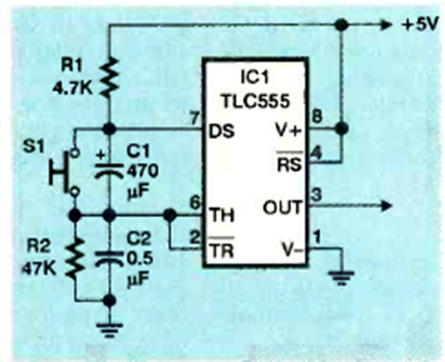 This circuit produces a signal whose frequency decays from 500 Hz to zero in a time interval given by C1. The circuit is from the October 1999 Electronics Now magazine.